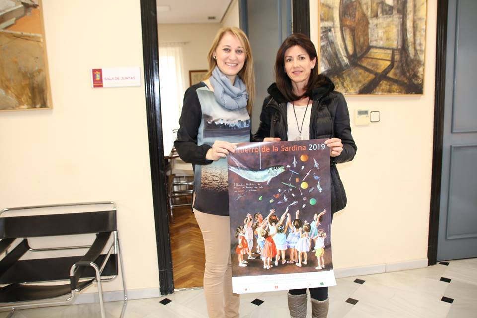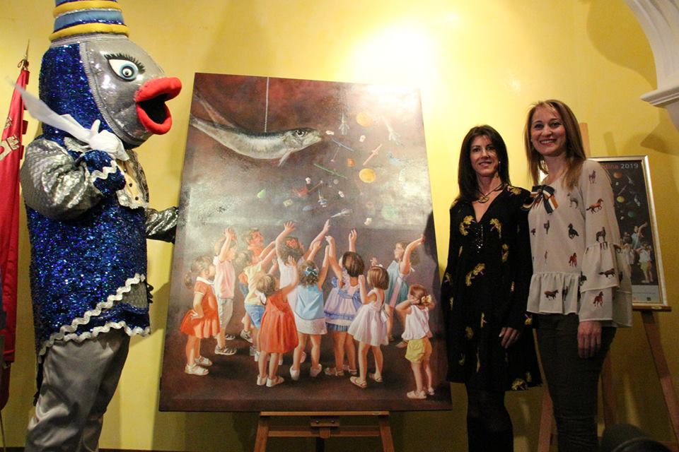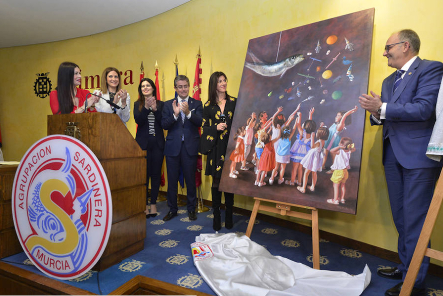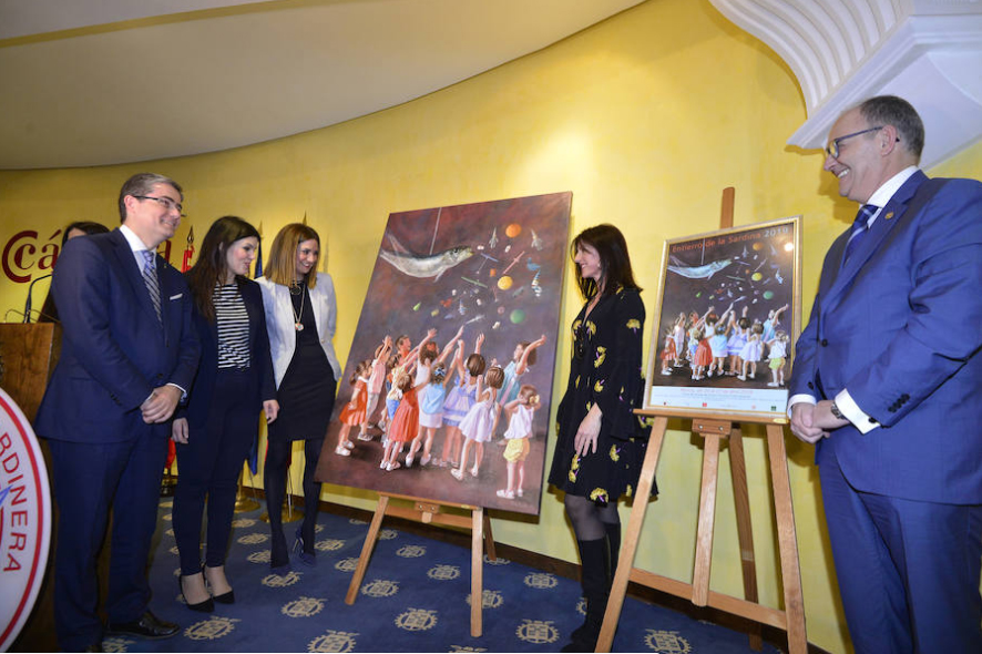 Perla Fuertes es la autora del cartel del Entierro de la Sardina de este año, que fue presentado en un acto en la Cámara de Comercio de Murcia, donde sonaron pitos y se agitaron pañuelos en el aire al son del Himno Sardinero.