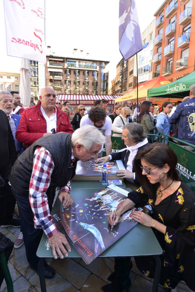 En el precioso y colorido cartel de la artista, una docena de niños alzan los brazos para recibir los juguetes que les dan los sardineros. La estrella, la clásica espada de plástico. Y sardinillas pequeñas de peluche, típicas desde hace unos años atrás.