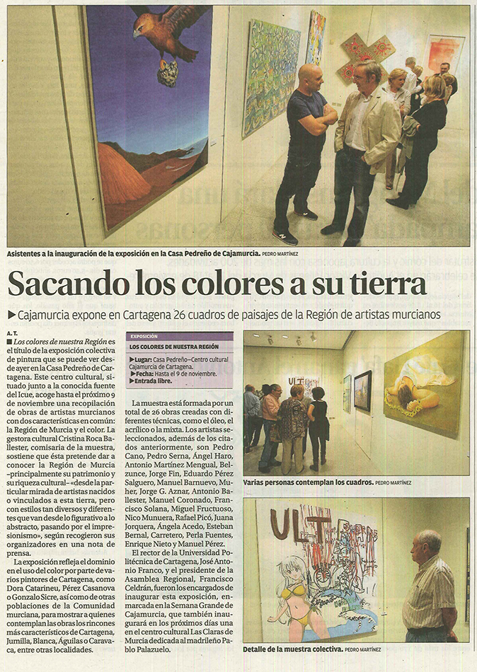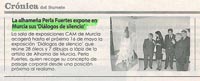 La pintora alhameña Perla Fuertes ha montado una exposición en la Cámara de Comercio e Industria de Murcia con motivo del centenario de esta institución. Sus obras se muestran junto a las de 29 artistas murcianos que han sido seleccionados por la Cámara de Comercio como el grupo de pintores más representativos de la Región. La muestra se inauguró el pasado viernes y estará abierta al público durante todo el mes.